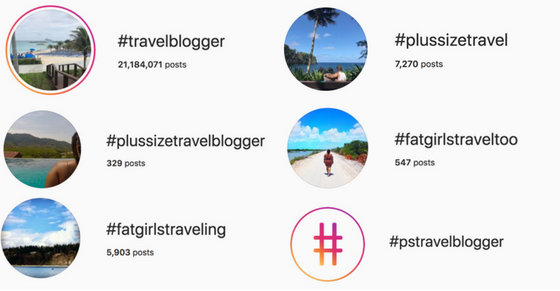 I chose these hashtags because those would be the terms we would use for anyone other industry. For example: you could search #fashionblogger, #psblogger or #plussizeblogger. I wouldn’t normally add the #fat, but I happen to know about #fatgirlstraveling and #fatgirlstraveltoo. The women behind those two hashtags are also trying to normalize things.